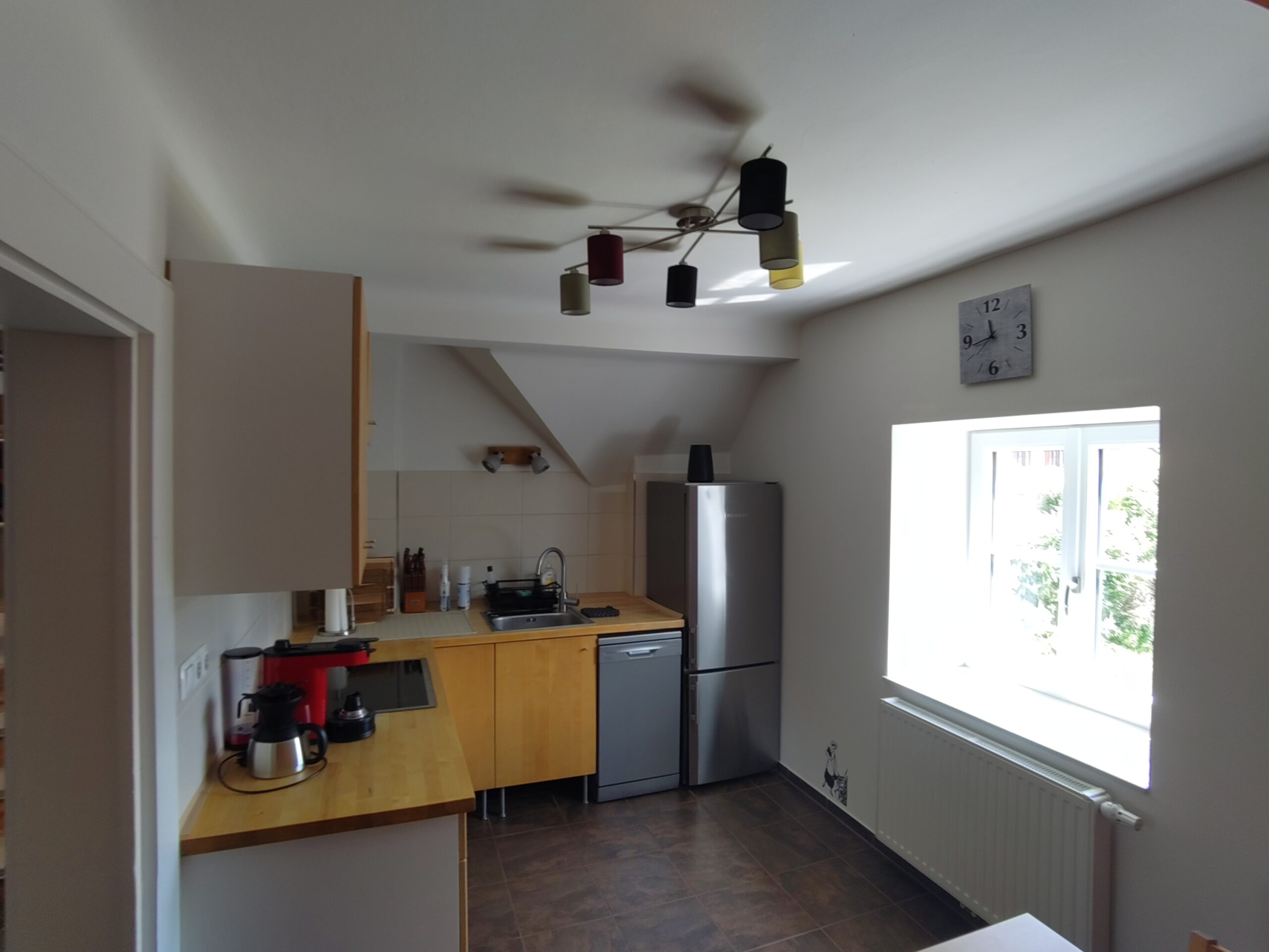 • Komplett ausgestattete Küche mit allem von A wie Auflaufform bis Z wie Zitronenpresse; Kühl-Tiefkühl-Kombi, Geschirrspüler, Herd inkl. Backrohr und Dunstabzug, Toaster, Kaffeemaschine, Weinkühler, …